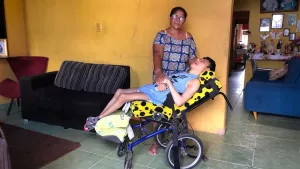 Avó pede ajuda para comprar cadeira adaptada para o neto com hidrocefalia e paralisia cerebral
