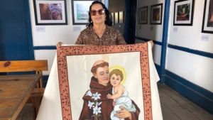 Artista plástica pinta bandeira da festa de Santo Antônio há 24 anos