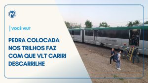 Pedra colocada nos trilhos faz com que VLT Cariri descarrilhe