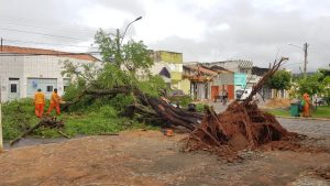 Pé de algaroba da Igreja dos Franciscanos tomba durante chuva desta segunda, em Juazeiro do Norte