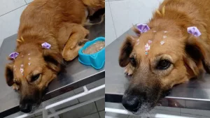 Cadela vítima de maus-tratos em Juazeiro do Norte recebe atendimento veterinário