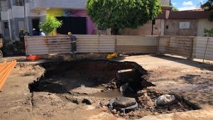 Cratera abre e interdita Rua Dr. Floro Bartolomeu em Juazeiro do Norte
