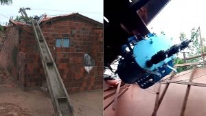 Poste com transformador cai sobre casa em Porteiras beirando uma tragédia face a rede de alta tensão