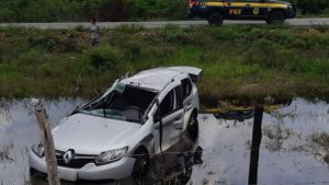 Carro bate em animal, capota e idosa morre na BR-402