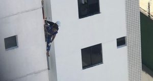 Dois operários ficam pendurados no 4º andar de prédio no Bairro Aldeota