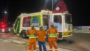 Caminhão da limpeza pública vira atração natalina em Juazeiro do Norte