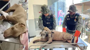 GCM prende acusado de maltratar cadela no Juazeiro e o BPMA resgata cão submerso num lamaçal em Crato