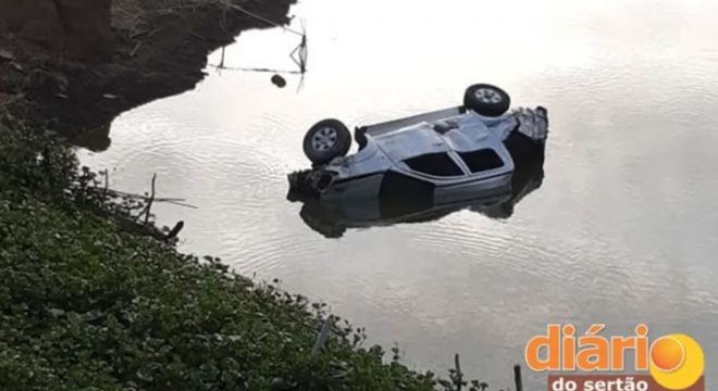 Carro caiu em açude durante acidente (Foto: Diário do Sertão)
