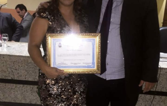 Na noite de segunda-feira (18) a sessão ordinária presidida pelo vereador Florisval Coriolano (PRTB) deu lugar a uma sessão solene para a entrega do título de cidadania cratense à Radialista Antônia Ricássia Alves Muniz. A iniciativa foi do vereador Renan Almeida (PATRI).