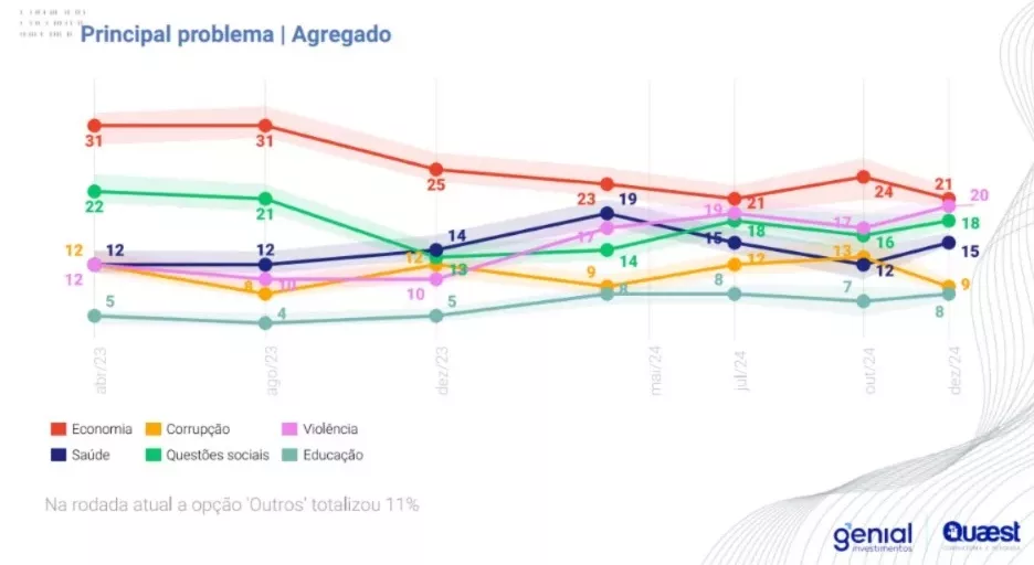 Principais problemas do país, segundo entrevistados. Foto: Gráfico da Pesquisa Quaest.