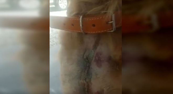 O cão Nhonhô, da raça golden retriever, pertence a Bernard Contipelli, dono de uma pousada na cidade. No Facebook, Contipelli postou um vídeo para mostrar a recuperação do animal de estimação. “A bala pegou a boca dele… Que homem malvado”, disse enquanto apontava para o ferimento.