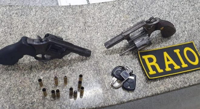 Os policiais militares disseram que estavam realizando um motopatrulhamento de rotina quando ouviram tiros na Rua C. Ao chegarem na via, conseguiram interceptar o veículo onde estavam os três homens. Um segundo veículo, também envolvido na ocorrência, não foi localizado.