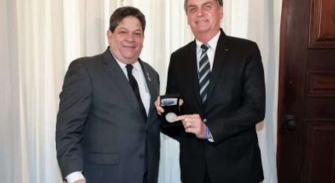 O presidente Jair Bolsonaro ao lado do ex-presidente do Banco do Nordeste, Alexandre Borges Cabral (Crédito: Marcos Corrêa/PR)