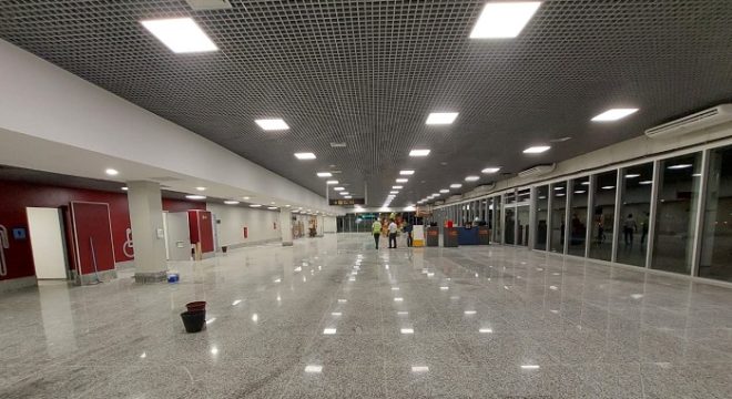 Desde o último sábado (3), o Aeroporto Orlando Bezerra de Menezes, em Juazeiro do Norte, começou a operar com uma nova área de embarque, bem maior que a antiga. Segundo a administradora do terminal, o espaço foi ampliado de 320m² para 720m², visando preparar o aeroporto para a alta temporada – de dezembro a março –, e posteriormente para o aumento de capacidade operacional, previsto para a entrega final das obras em abril do ano que vem.
