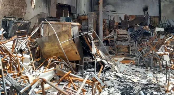 Entulhos do galpão estão expostos. Foto: Isabel Andrade