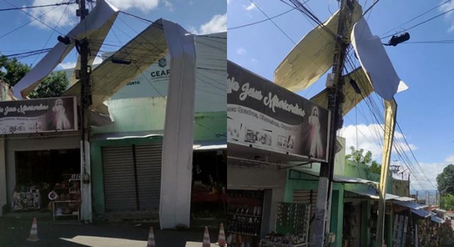 As fortes precipitações registradas na madrugada deste domingo (24), ocasionaram no desprendimento de parte da estrutura do teleférico do Horto, localizado em Juazeiro do Norte. Parte do equipamento acabou atingindo casas e um poste da rede de energia próximos do local.