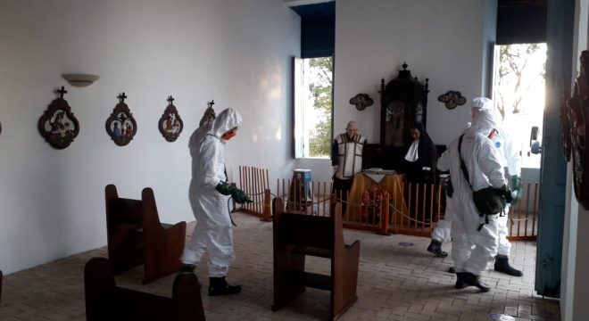 Após seis meses fechado, oficiais do Exército desinfectam o Horto e devotos voltam a visitar o local