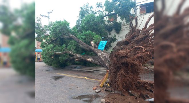 As chuvas dos últimos dias fizeram com que uma árvore cedesse no cruzamento da avenida Padre Cícero com rua Dr. Floro Bartolomeu, em Juazeiro do Norte. O oiti se desprendeu por completo do solo e chegou a atingir parte da rede elétrica que cruza o local. Contudo, segundo relatado até o momento, não houve registro de curtos-circuitos ou maiores problemas gerados pela situação.