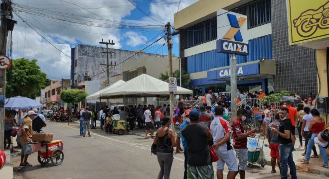 Em Crato, as principais ruas comerciais da cidade tiveram o trânsito interrompido. No entanto, mesmo com a fiscalização das filas, as aglomerações saíram de controle nesta manhã, em razão do saque do Auxílio Emergencial do Governo Federal e outros benefícios.