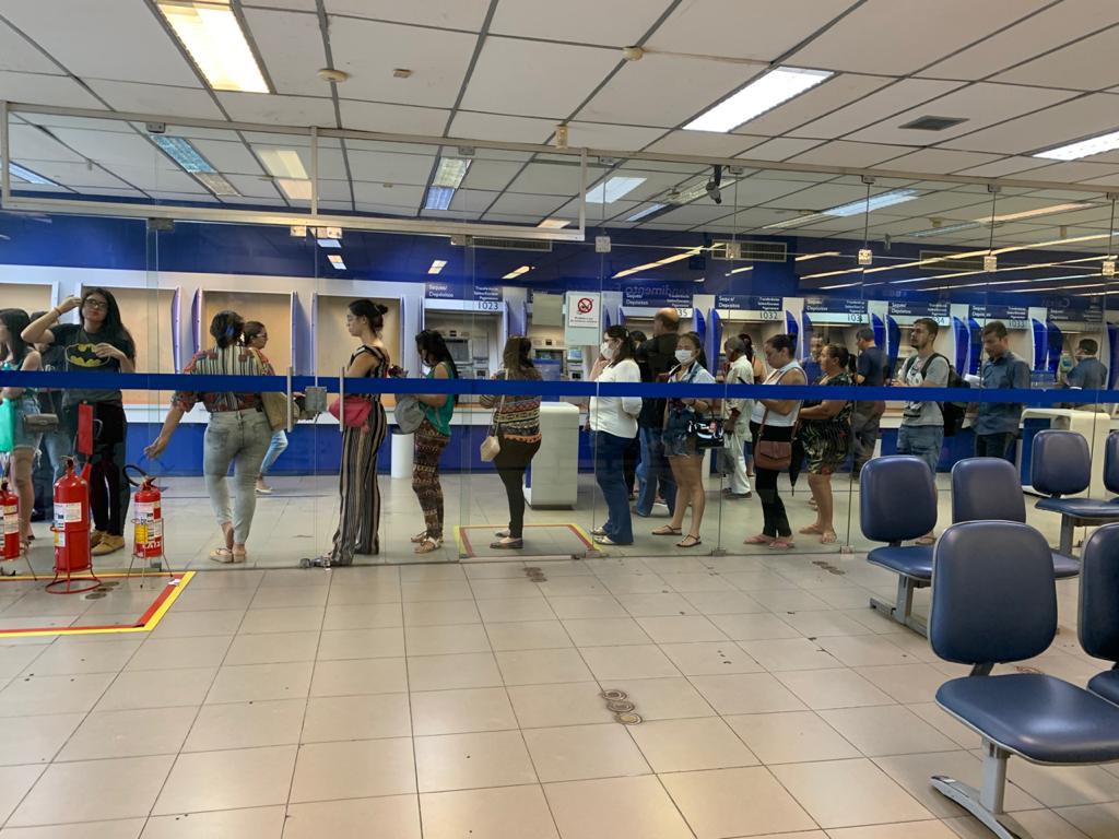 Os clientes transitam livremente pela unidade do Banco do Brasil localizada no centro da cidade. No entanto, a unidade liberou funcionários com mais de 60 anos, diabéticos e gestantes.