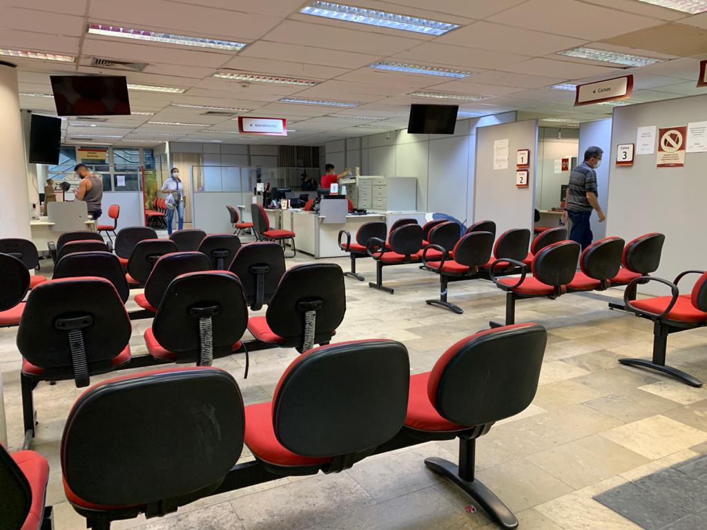 O número máximo de clientes permitidos dentro da agência é seis, quantidade equivalente ao número de caixas atendendo. Os funcionários estão trabalhando normalmente, mas contam com com itens de higiene e proteção, como álcool em gel e máscaras descartáveis.