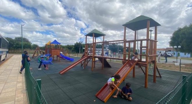 O bairro Malvinas, em Barbalha, recebeu duas brinquedopraças nesta quinta-feira, 20. A ação é uma parceria da Prefeitura Municipal de Barbalha com o Governo do Estado do Ceará. Com o equipamento, espera-se a promoção da integração social entre crianças, adolescentes e adultos da comunidade, além de incentivar a prática esportiva no local.