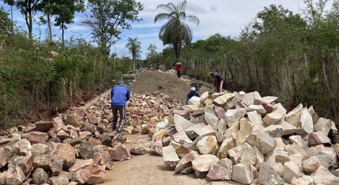 Por meio da Secretaria de Urbanismo e Obras (Seurb), está sendo construída a pavimentação de 600 metros de calçamento, além da passagem molhada.