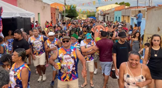 Bloco Goteiras arrasta foliões no Bairro do Rosário, em Barbalha