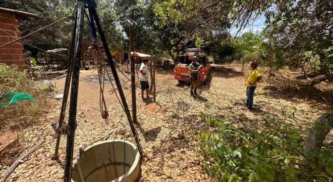 Equipes do Corpo de Bombeiros Militar do Estado do Ceará (CBMCE) resgataram, na manhã dessa quinta-feira (21), uma cadela que caiu em um poço de 10 metros de profundidade, na zona rural do município de Barbalha.