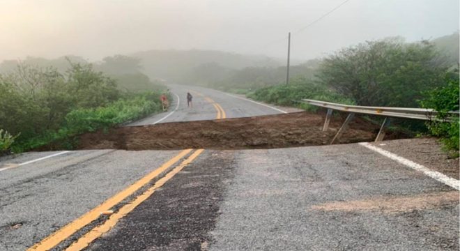 Outro ponto da CE-384, entre Mauriti e a BR-116, tem bloqueio parcial devido a um ponto de alagamento. De acordo com a SOP, o local está sinalizado e a superintendência aguarda a redução do volume de água para iniciar o trabalho de desobstrução dos bueiros.