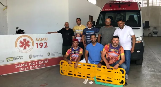 Um grupo de carregadores do Pau da Bandeira de Santo Antônio, padroeiro de Barbalha, participaram de uma capacitação de primeiros socorros, nesta sexta-feira (31), na base do SAMU do município. O treinamento preparou os carregadores para eventuais situações de trauma durante o cortejo, que acontece no próximo domingo (2).
