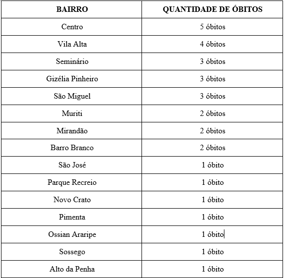 Cerca de 15 bairros do Crato registraram mortes por Covid-19, confira a lista