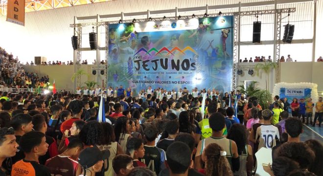 Na tarde desta segunda-feira (25), a Prefeitura de Juazeiro do Norte realizou a abertura oficial dos XVII Jogos Estudantis de Juazeiro do Norte (JEJUNOS), no Ginásio Poliesportivo. Com o tema “Cultivando valores no esporte”, o evento promete grandes emoções para estudantes-atletas do município. Em 2022, a realização dos jogos foram retomadas após uma lacuna de 10 anos.