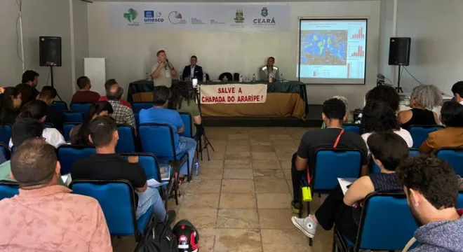A fala ocorreu durante o 1º Seminário Salve a Chapada do Araripe: Riscos socioambientais à caixa d’água do sertão, realizado no auditório do Geopark Araripe, no Crato. O evento reuniu especialistas e movimentos sociais para debater ameaças à biodiversidade e discutir medidas de proteção ao território.