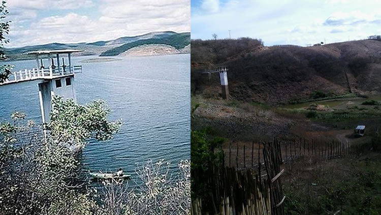 Açude Quixabinha antes e depois da transposição do Rio São Francisco