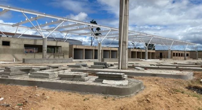 Muro, gradil, fundações, estrutura de concreto, alvenaria, revestimento e piso cerâmico e instalações hidrossanitárias estão concluídos. A obra segue para finalização das estruturas metálicas da cobertura, rodapés de alumínio, instalações elétricas e o piso industrial. A previsão de conclusão é de até o final de 2023.