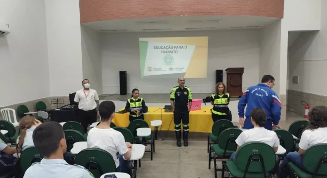 O setor de Educação do Trânsito do Demutran em Juazeiro segue com uma série de ações educativas na busca de um trânsito seguro no município. Este ano já são 77 atividades, sendo a maioria delas em escolas públicas juazeirenses. Foi o caso desta segunda-feira, dia 09, reunindo centenas de alunos do Colégio Militar Coronel Hervano Macedo Júnior no bairro Romeirão.