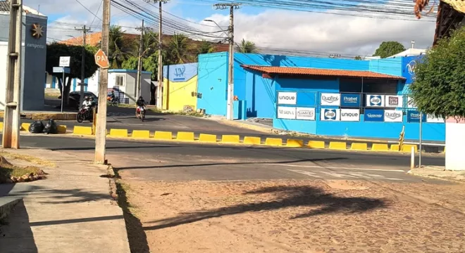 Cruzamento da Avenida Castelo Branco com a Rua Professora Ivany Feitosa foi fechado em Juazeiro. (Foto: Reprodução)