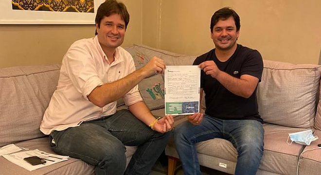 A ata de filiação foi assinada por Diogo durante reunião realizada na tarde desta segunda-feira (21). Logo após, posou para foto ao lado do presidente estadual do Podemos, Fernando Torres.