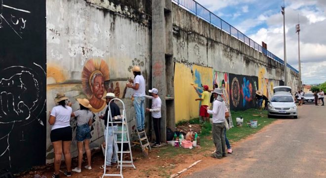 Em Barbalha, estádio Inaldão recebe pinturas de artistas locais e nacionais