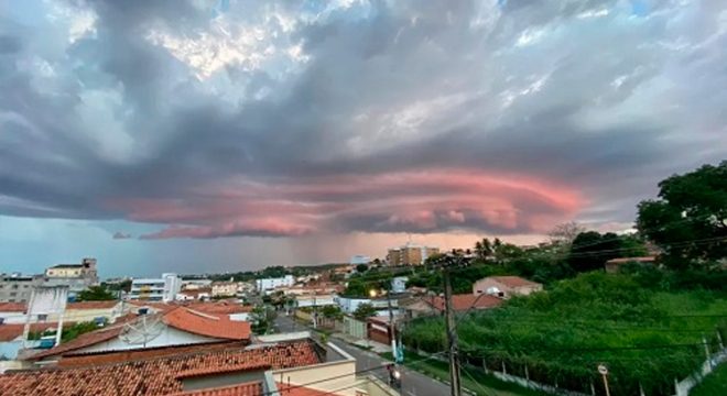 Um fenômeno conhecido como “nuvem-prateleira”, tecnicamente conhecida como Cumulonimbus Arcus, foi registrada na tarde de sábado (14) no município do Crato. Uma moradora fez o registro pouco antes de um temporal cair na região.