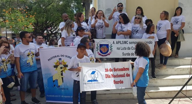 Esta segunda-feira (26), marca o dia nacional do surdo. Em alusão à data, foi realizada, em Juazeiro do Norte, uma caminhada para chamar atenção sobre a necessidade de políticas públicas voltadas para a comunidade surda.