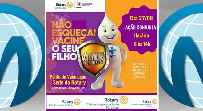Os três clubes Rotary Juazeiro do Norte, Padre Cícero e Cariri promovem, neste sábado (27), uma ação conjunta de vacinação contra a poliomielite. A imunização acontece em parceria com a Secretaria de Saúde (Sesau) de Juazeiro do Norte, das 8h às 14h, na sede da escola Rotary Club, localizada na avenida Padre Nestor Sampaio, número 120.