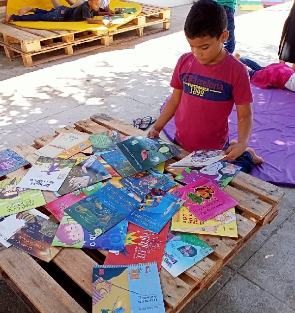 O espaço conta com estruturas de pallets e geladeira literária, onde podem ser encontrados títulos variados da literatura. Tatames também foram espalhados pelo ambiente, para que os alunos pudessem aproveitar o momento de conhecimento e aprendizado. As ilustrações do local foram realizadas pelo artista Pakato Dias.
