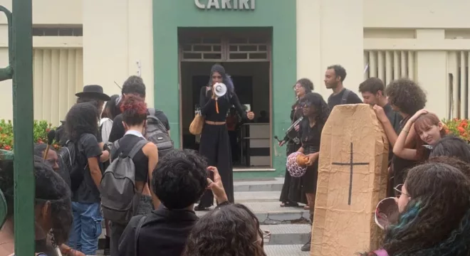 Estudantes do Centro de Artes da Universidade Regional do Cariri (URCA) realizaram uma manifestação na última terça-feira (21), reivindicando melhorias no campus Violeta Arraes. Os alunos denunciam a estrutura precária, a falta de espaços adequados para as aulas, o acúmulo de lixo, bebedouros enferrujados e móveis danificados.