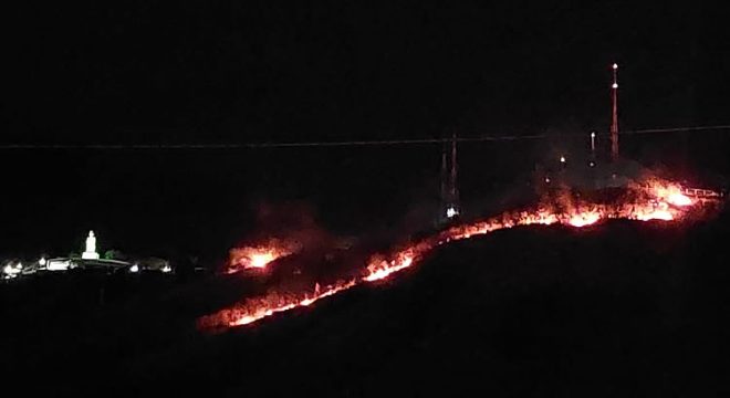 E mais uma vez as labaredas de fogo tomaram conta de parte da Serra do Catolé na qual encontra-se erguido o monumento em homenagem ao Padre Cícero em Juazeiro. Na noite desta terça-feira voltou a se aproximar da estátua, do Restaurante Mirante, torres de transmissão de Rádio e TV e de muitas residências. As chamas se alastram com facilidade devido aos ventos fortes, a vegetação seca e a baixa umidade relativa no ar.