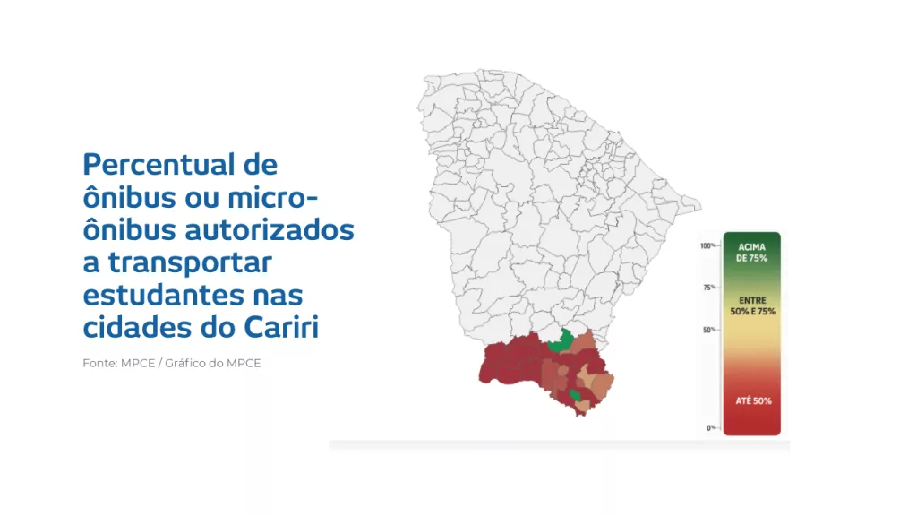 Somente 27% da frota de transporte escolar dos municípios do Cariri estão autorizados para transportar estudantes, de acordo com dados do painel público “BI Transporte Escolar no Ceará“, desenvolvido pelo Ministério Público do Ceará (MPCE). O levantamento é referente a atualização do dia 28 de fevereiro de 2026.