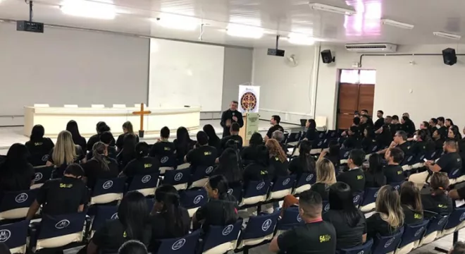 Mais de 160 funcionários participaram da palestra realizada por Dom Basílio, Monge de Garanhuns. Ainda de acordo com a irmã Glória, a ação ainda contará com o “momento deserto”, onde as pessoas serão convidadas a “ficarem sozinhas, consigo e com Deus“.