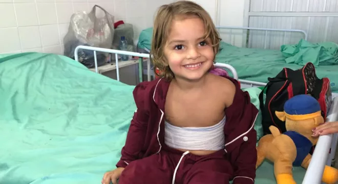 Após mais de um mês internado, um paciente de três anos teve alta após passar por procedimento cirúrgico inédito na região
