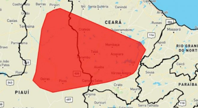 O Instituto Nacional de Meteorologia (Inmet) emitiu nesta quarta-feira (21), o alerta vermelho para baixa umidade em cidades do Cariri. O grau de severidade apontado pelo órgão é de ‘grande perigo’. O aviso teve início às 15h e segue até às 18h, podendo ser renovado. A umidade deve ficar abaixo de 12% nos seguintes municípios: